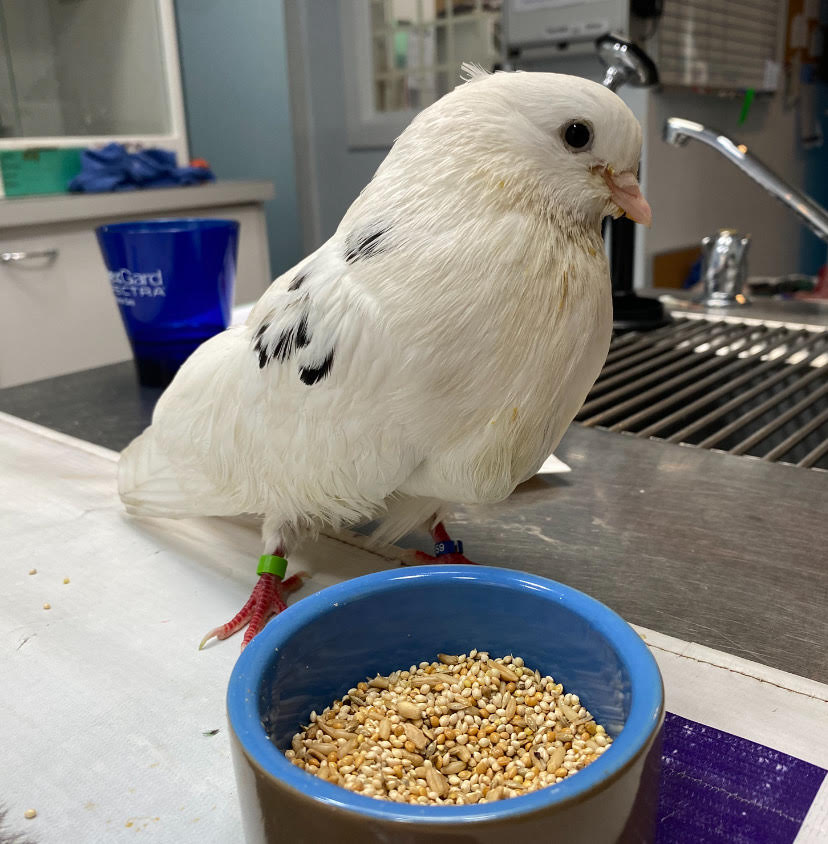 Freckle and his girlfriend Ghost were the first pigeons I ever rescued. At the time, I didn’t know much about pigeons. But when I received these birds from a fellow rescuer, I knew I wasn’t going to look the other way! Freckle and Ghost were the best two pigeons I could have asked for. They were my introduction to the world of pigeon intensive care when they contracted PMV (paramyxovirus). They taught me how to care for pigeons- and showed me that pigeons can be great companions.